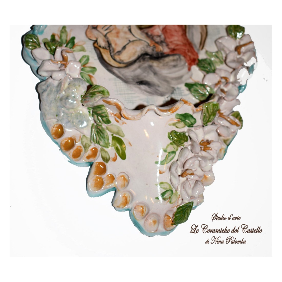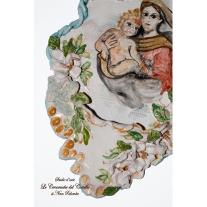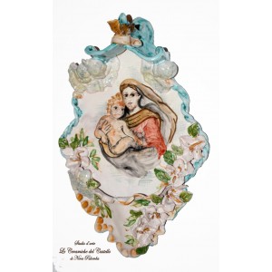 Acquasantiera Madonna con Bambino è realizzata e dipinto a mano da "Le Ceramiche del Castello di Nina Palomba" con materie prime di esclusiva origine italiana. L'articolo include certificato di autenticità dipinto a mano. Made in Italy.