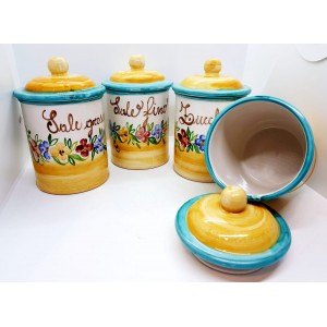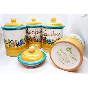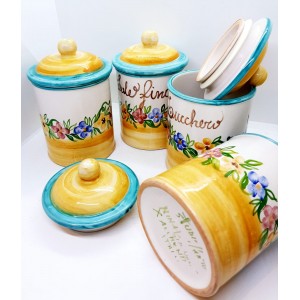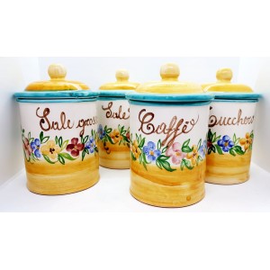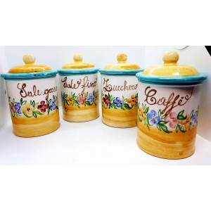 Set 4 Barattoli Sale fino Sale grosso Zucchero Caffé Linea Fiori Misti
