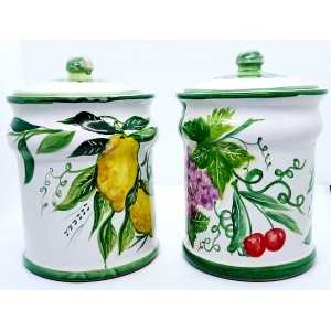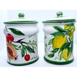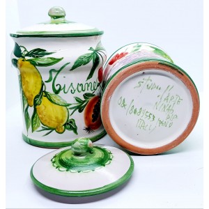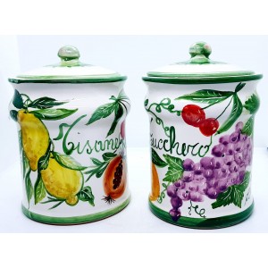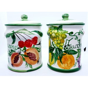 Set 2 Barattoli per Zucchero e Tisane sono realizzati e dipinti a mano da "Le Ceramiche del Castello di Nina Palomba" con materie prime di esclusiva origine italiana. L'articolo include certificato di autenticità dipinto a mano. Made in Italy.