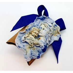 -15 pezzi: Madonnina con Bambino in azzurro in ceramica realizzata e dipinto a mano da "Le Ceramiche del Castello di Nina Palomba" con materie prime di esclusiva origine italiana.