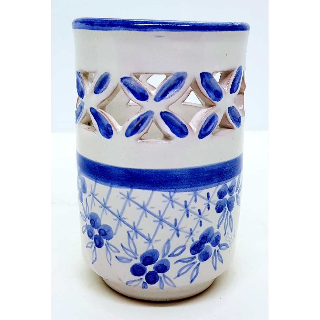Bicchiere Portaspazzolini Traforato Linea Fiori Blu