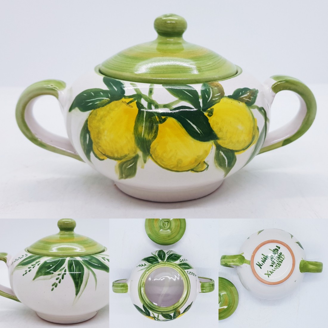 Zuccheriera è realizzata e dipinta a mano da "Le Ceramiche del Castello di Nina Palomba" con materie prime di esclusiva origine italiana. L'articolo include certificato di autenticità dipinto a mano. Made in Italy.
