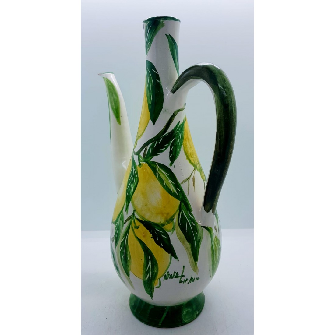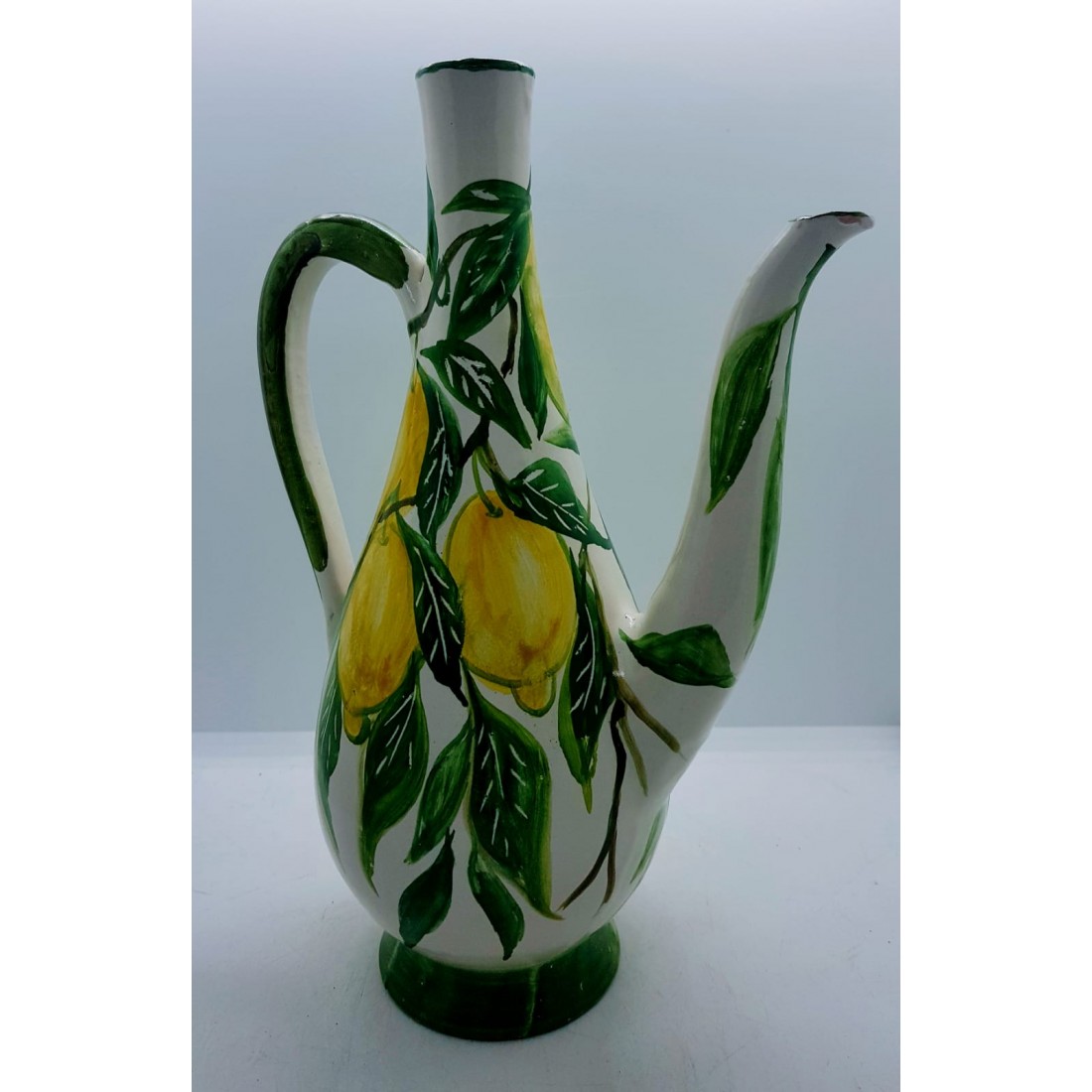 Oliera da tavola è realizzata e dipinta a mano da "Le Ceramiche del Castello di Nina Palomba" con materie prime di esclusiva origine italiana.