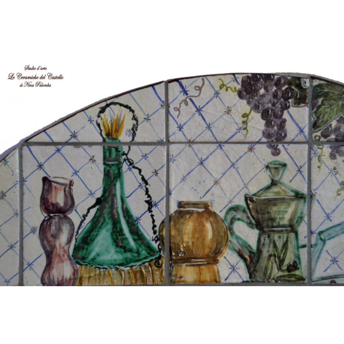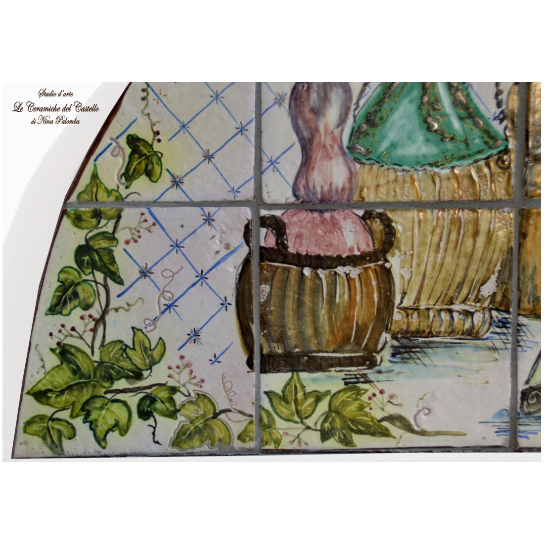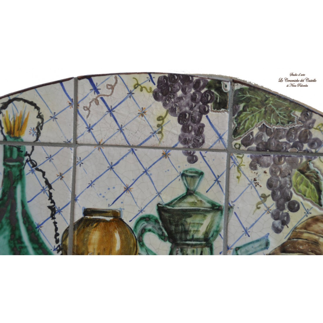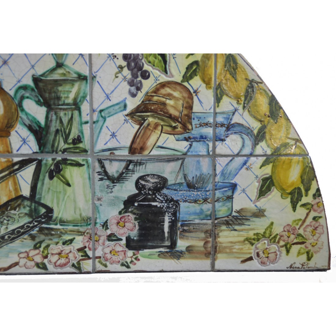 Il Pannello decorativo - Natura Morta è realizzato e dipinto a mano da "Le Ceramiche del Castello di Nina Palomba" con materie prime di esclusiva origine italiana.
