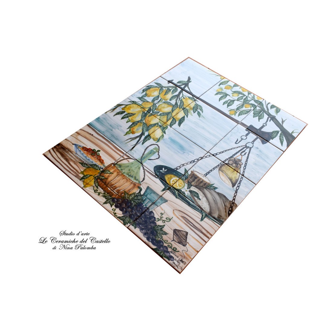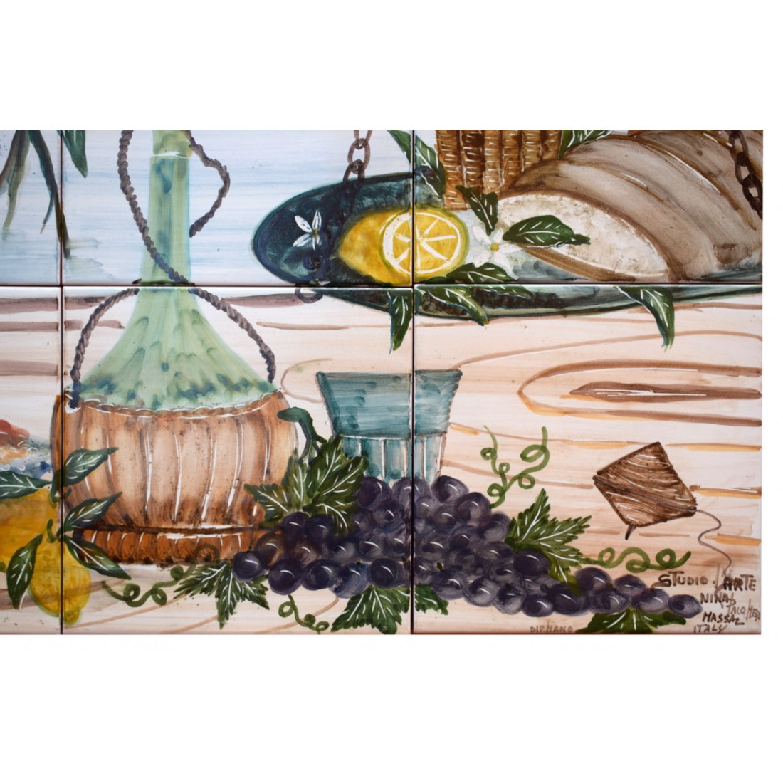 Il Pannello decorativo - Natura Morta è realizzato e dipinto a mano da "Le Ceramiche del Castello di Nina Palomba" con materie prime di esclusiva origine italiana.