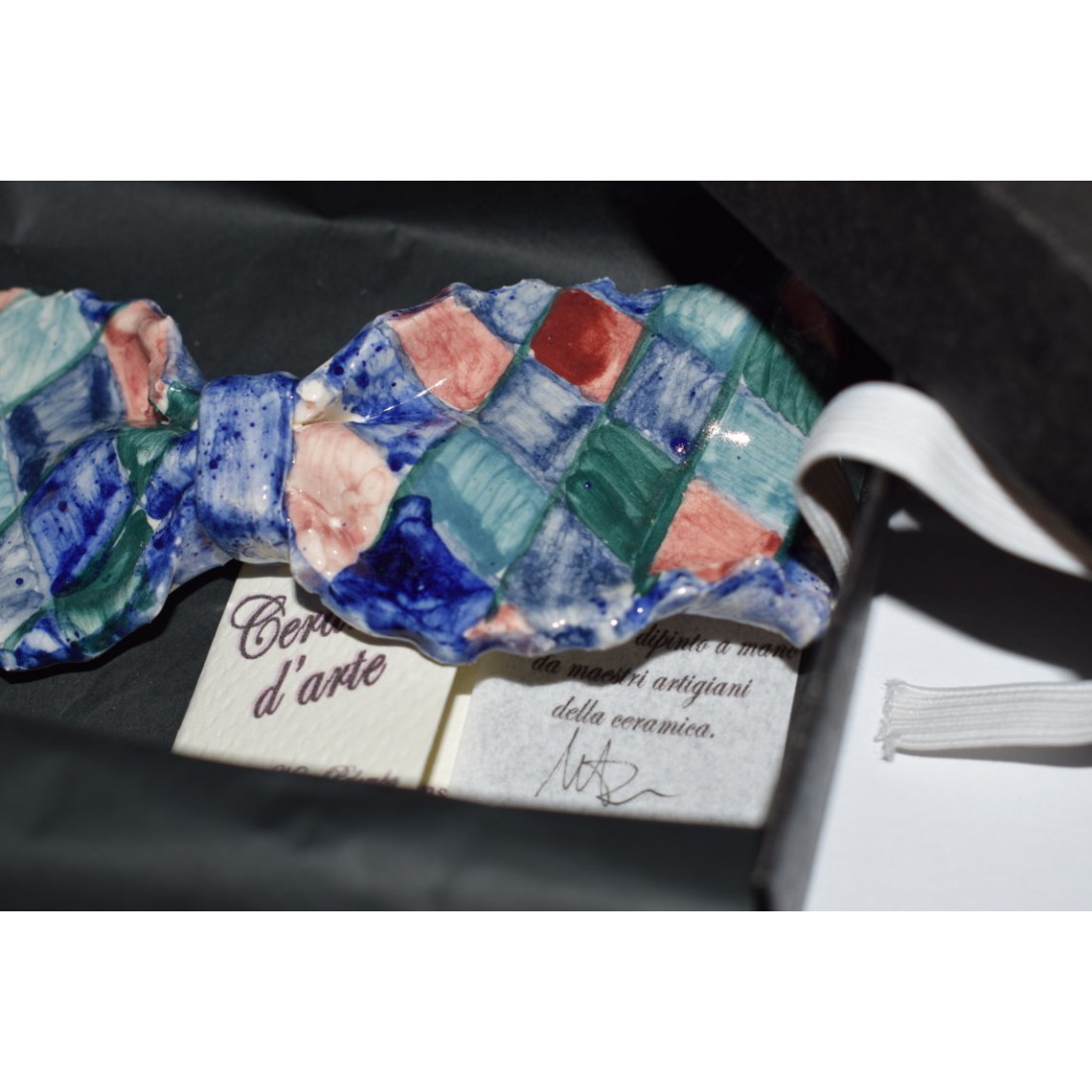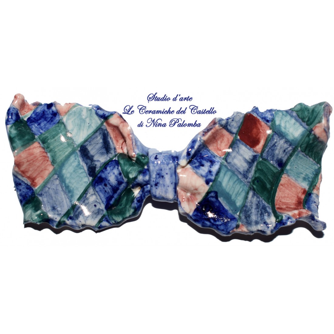 Papillon in Ceramica - Linea Classica è realizzato e dipinto a mano da "Le Ceramiche del Castello di Nina Palomba" con materie prime di esclusiva origine italiana. L'articolo include certificato di autenticità dipinto a mano. Made in Italy. Tutte le imperfezioni, le screpolature di smalto, i puntini, le colature sono testimonianza di un prodotto realizzato interamente a mano. Sono gocce di oro che impreziosiscono il pezzo.