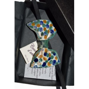 Papillon in Ceramica - Linea Classica è realizzato e dipinto a mano da "Le Ceramiche del Castello di Nina Palomba" con materie prime di esclusiva origine italiana. L'articolo include certificato di autenticità dipinto a mano. Made in Italy. Tutte le imperfezioni, le screpolature di smalto, i puntini, le colature sono testimonianza di un prodotto realizzato interamente a mano. Sono gocce di oro che impreziosiscono il pezzo.