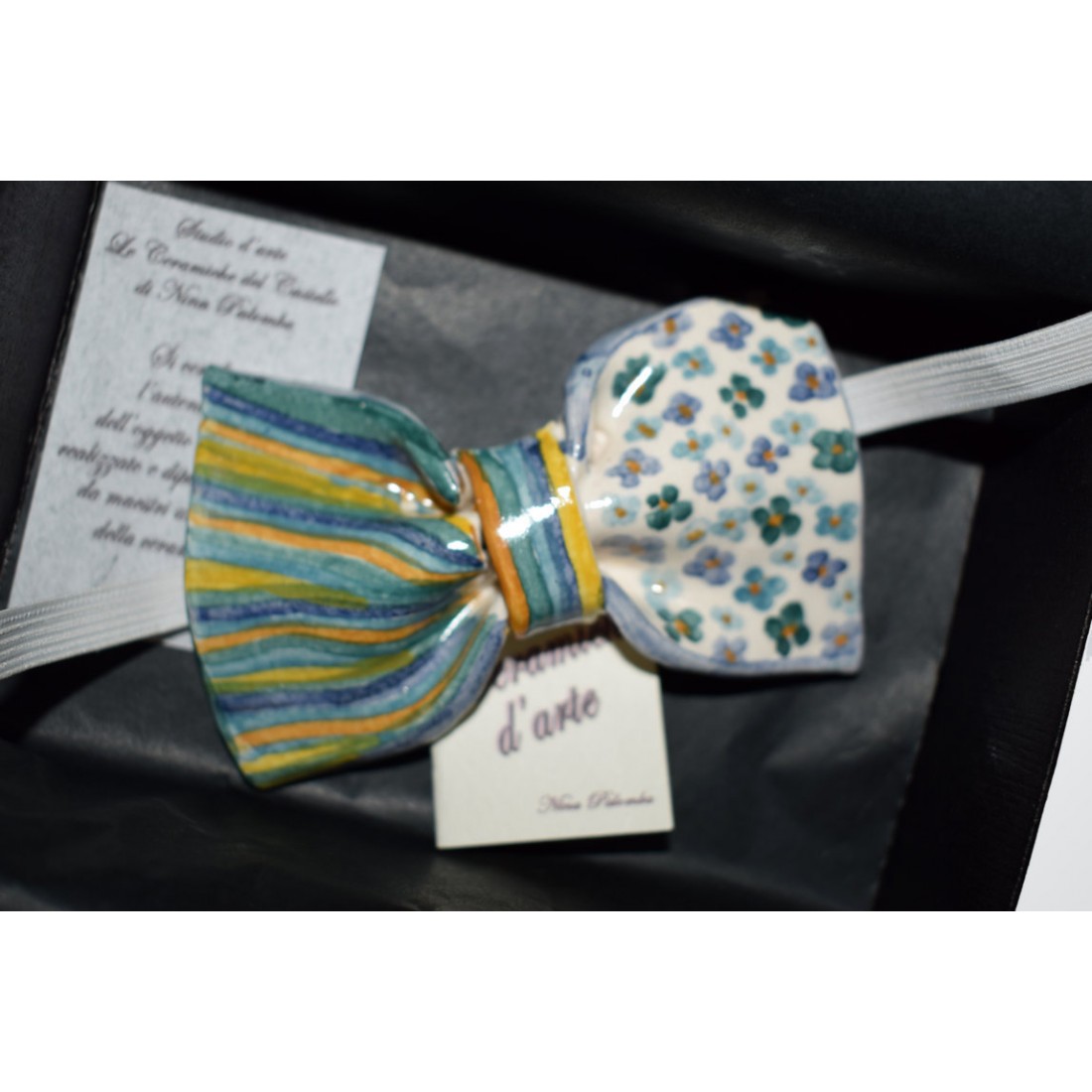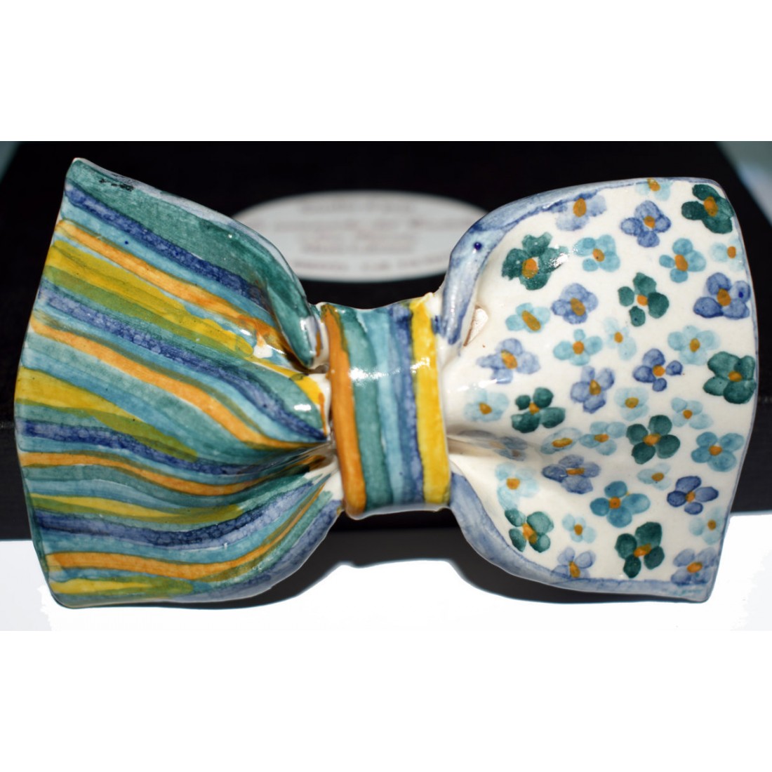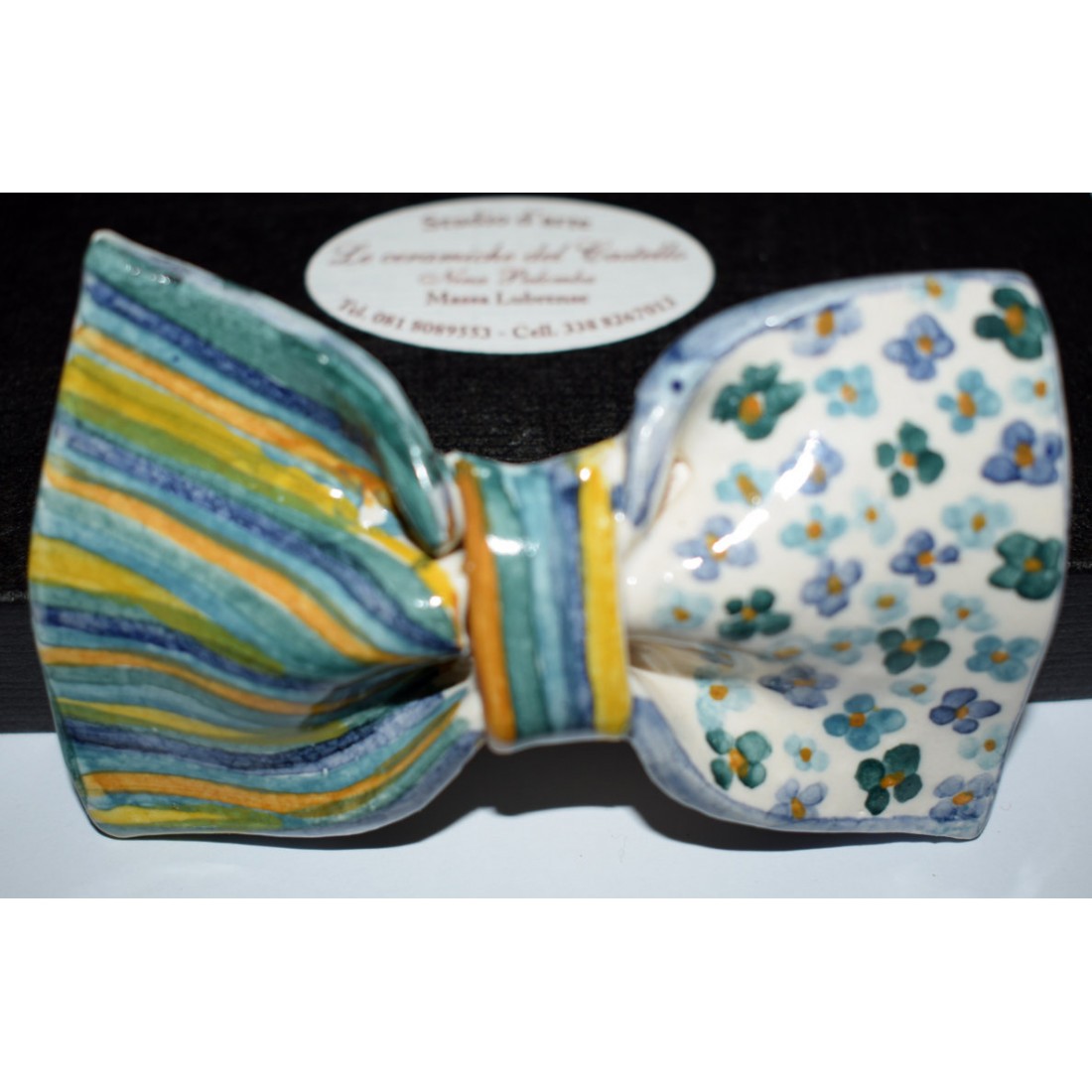 Papillon in Ceramica - Linea Classica è realizzato e dipinto a mano da "Le Ceramiche del Castello di Nina Palomba" con materie prime di esclusiva origine italiana. L'articolo include certificato di autenticità dipinto a mano. Made in Italy. Tutte le imperfezioni, le screpolature di smalto, i puntini, le colature sono testimonianza di un prodotto realizzato interamente a mano. Sono gocce di oro che impreziosiscono il pezzo.