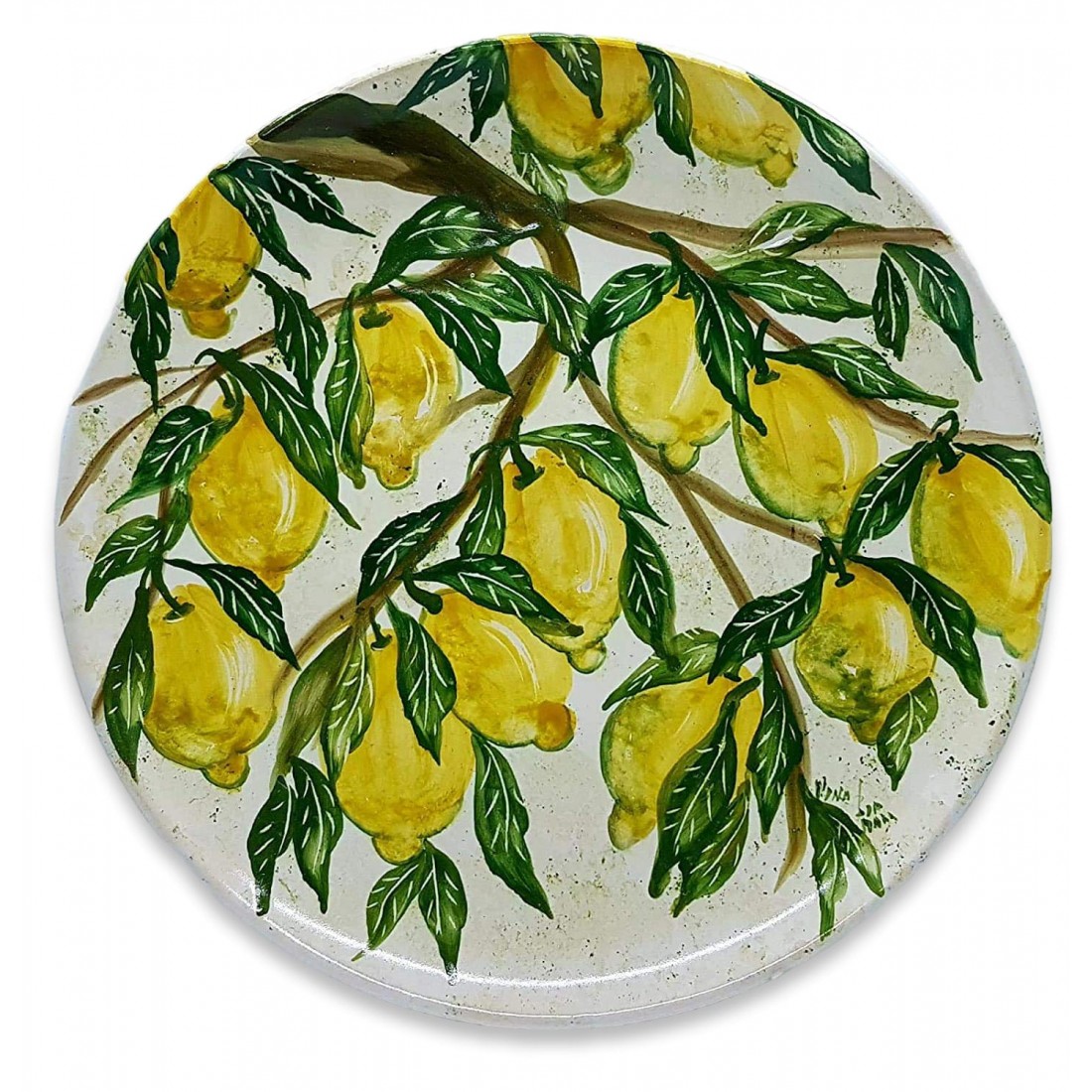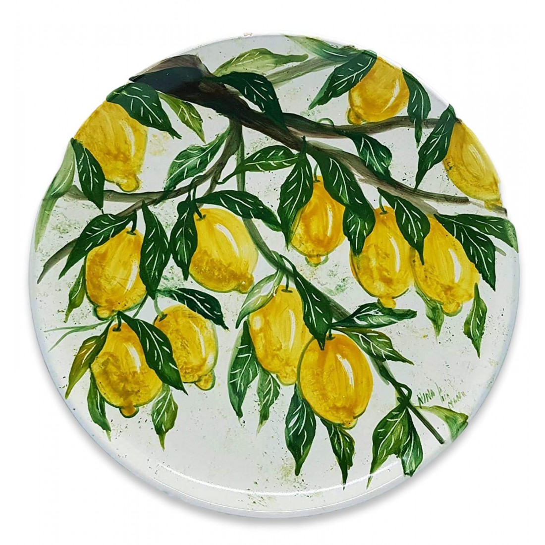 Piatto da muro Linea Limoni è realizzato e dipinto a mano da "Le Ceramiche del Castello di Nina Palomba" con materie prime di esclusiva origine italiana. L'articolo include certificato di autenticità dipinto a mano. Made in Italy.
