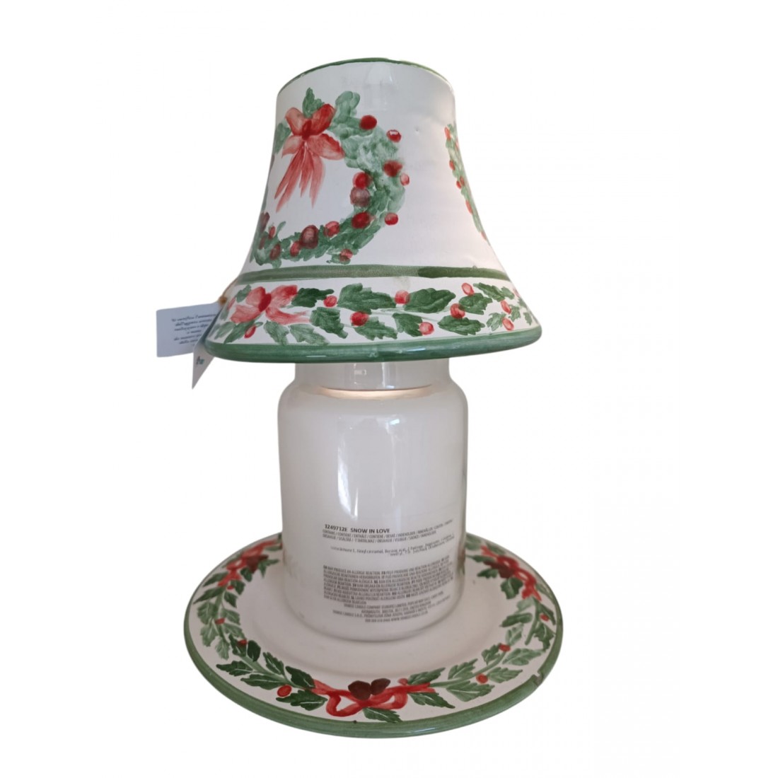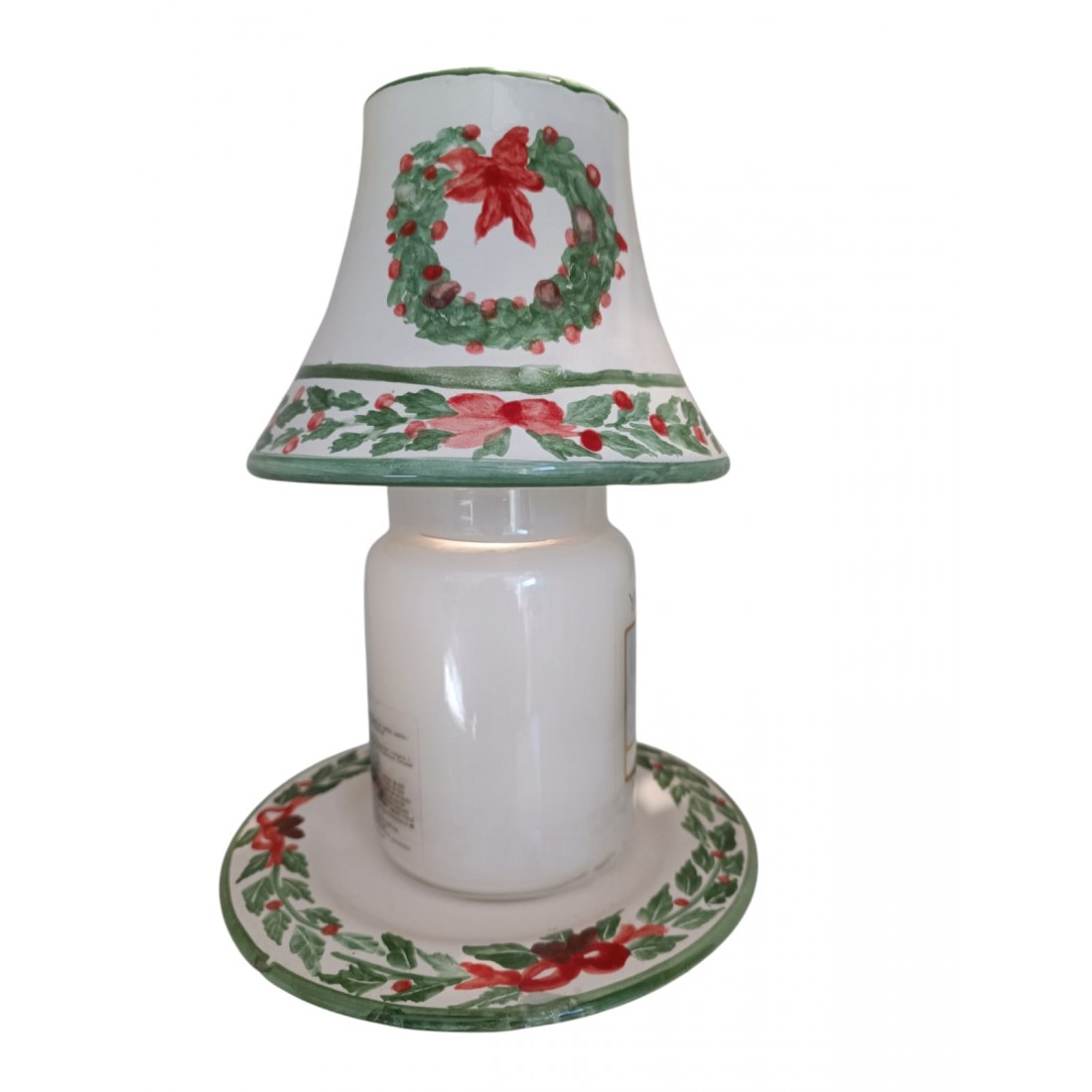 La lampada per candela in barattolo è realizzata e dipinta a mano da "Le Ceramiche del Castello di Nina Palomba" con materie prime di esclusiva origine italiana. Decorazione da interno/esterno.