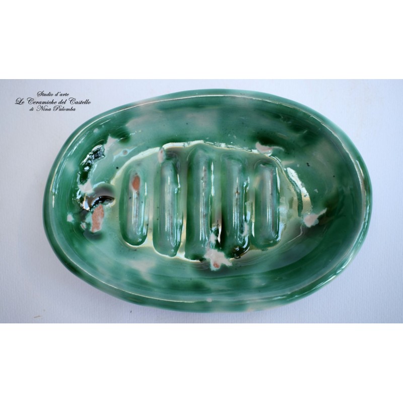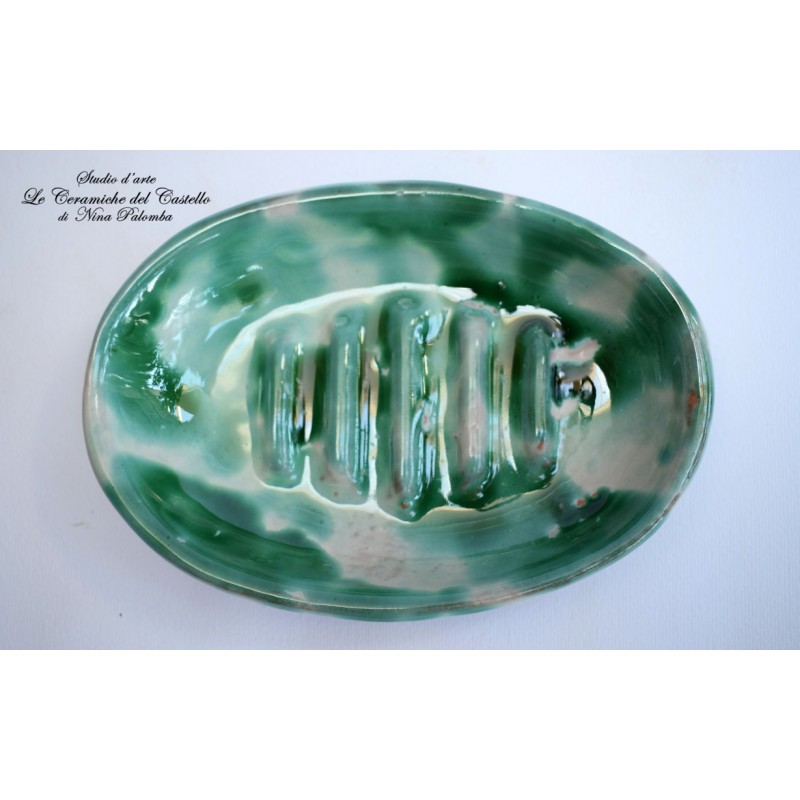 Il portasapone è realizzato e dipinto a mano da "Le Ceramiche del Castello di Nina Palomba" con materie prime di esclusiva origine italiana.