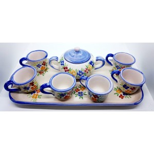 Set Caffé: Vassoio, 6 tazzine, zuccheriera è realizzato e dipinto a mano da "Le Ceramiche del Castello di Nina Palomba" con materie prime di esclusiva origine italiana. L'articolo include certificato di autenticità dipinto a mano. Made in Italy.