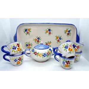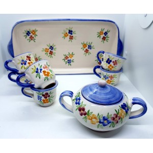 Set Caffé: Vassoio, 6 tazzine e zuccheriera Fiori Blu